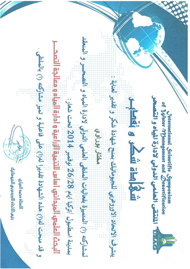 الملتقى الدولي لإدارة المياه والتصحر بمدينة إسطنبول/ تركيا أيام 26/28 نوفمبر 2014 .