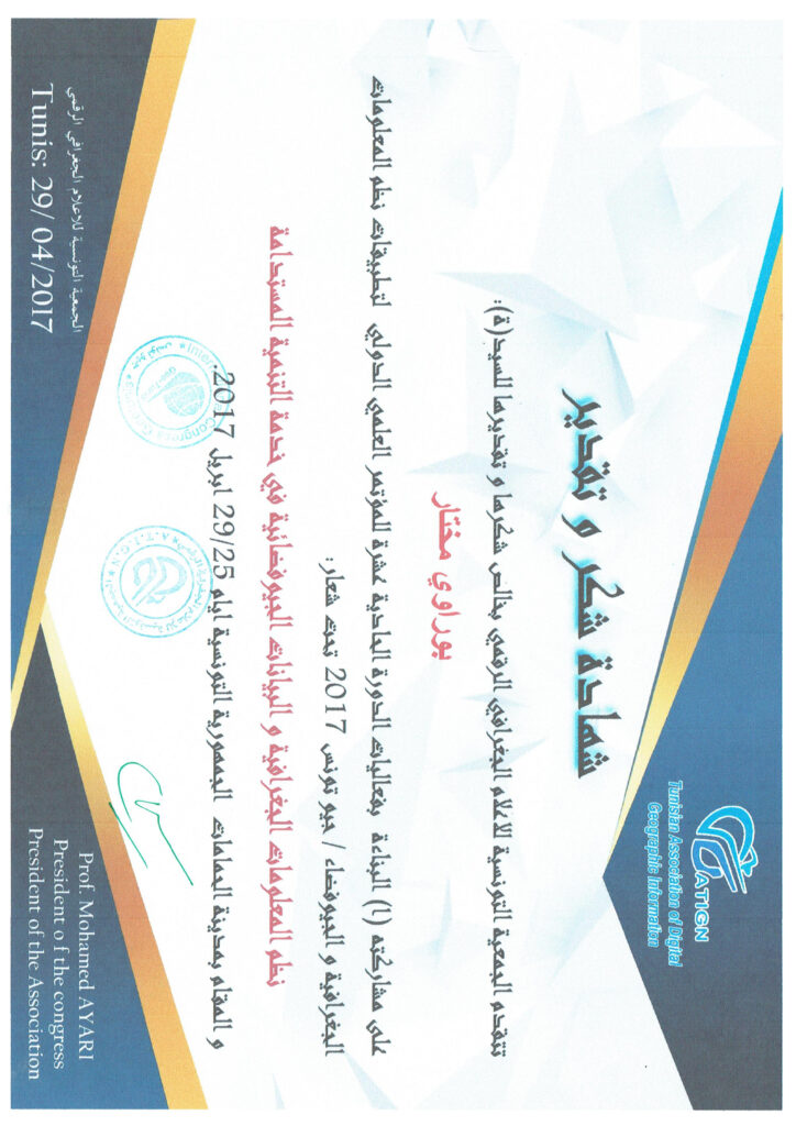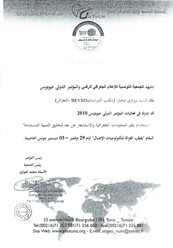 المؤتمر الدولي لتطبيقات نظم المعلومات الجغرافية والجيو فضاء/ جيوتونس (25-29 أفريل2017 بتونس) .